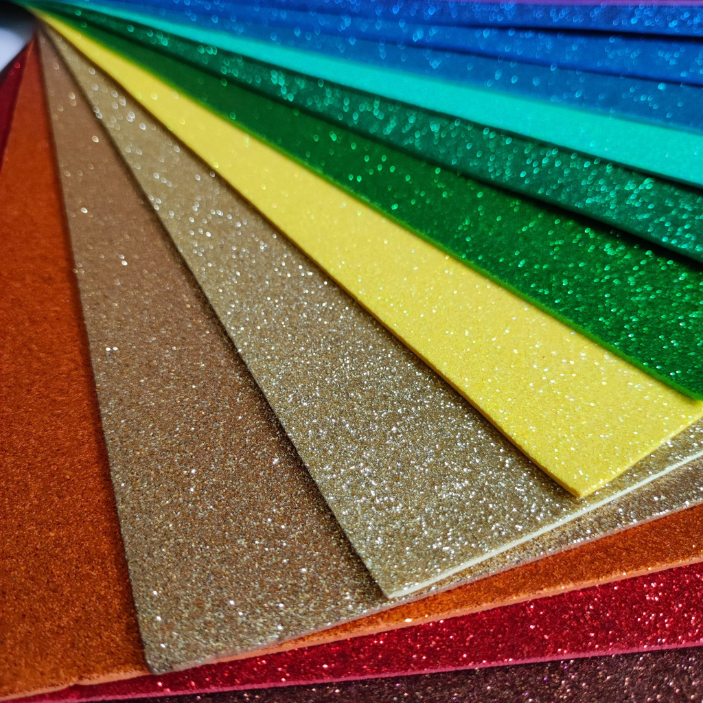 Hârtia gumată cu sclipici are proprietăți similare cu versiunea colorată: se înmoaie la căldură, se modelează ușor și poate fi lipită. Pentru tăiere se pot folosi foarfeca, cutterul sau perforatorul hobby.